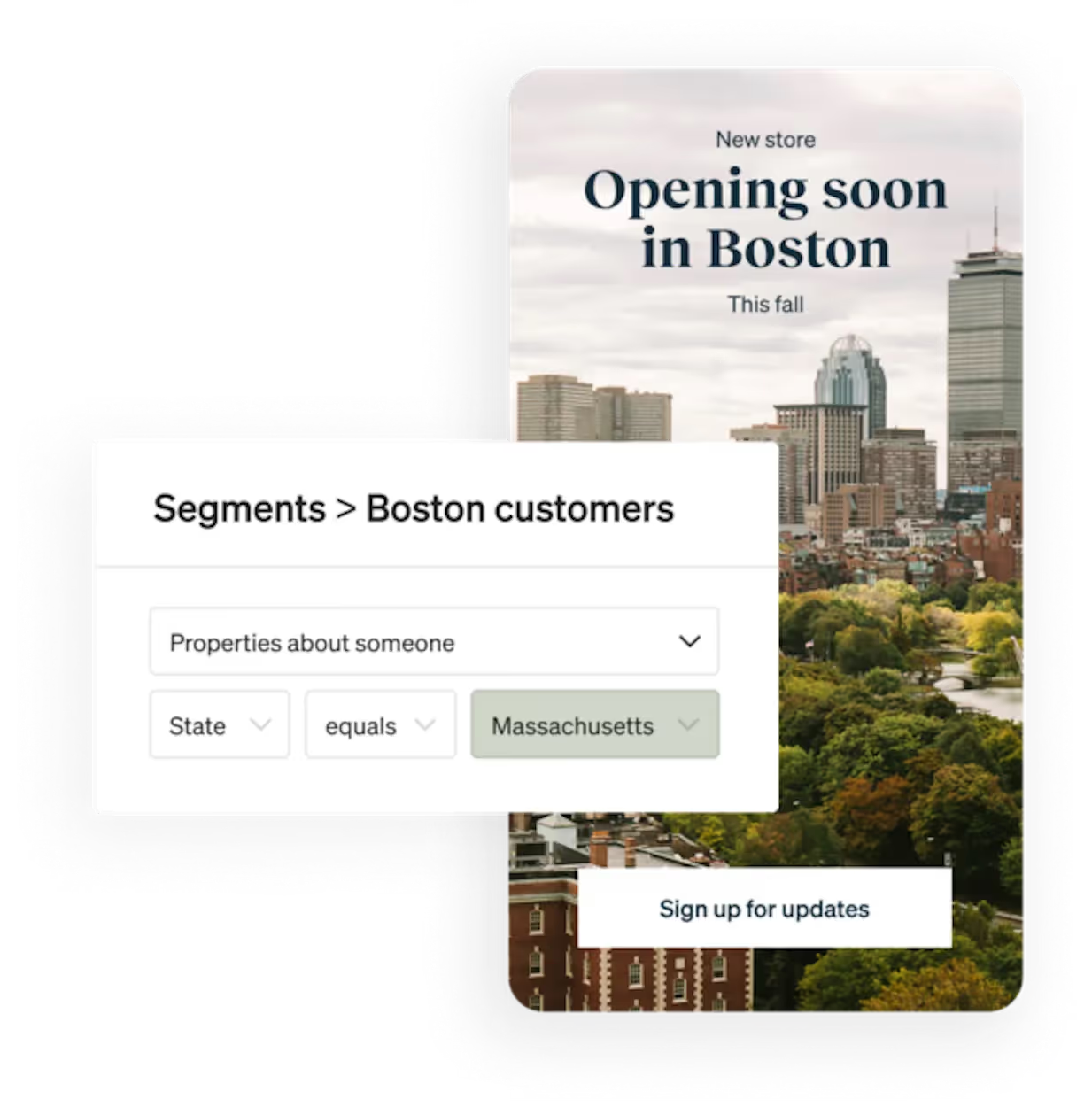 A business uses geographic segments to reach their audience in a specific city. They target profiles who live in Boston to announce a new store opening up in that city.